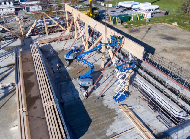Mitte Januar 2025 wurden die Bauarbeiten gestartet. Doch bevor neu gebaut wird, mussten die alten Gebäude zuerst abgebrochen werden, um den entsprechenden Raum für das Neue zu schaffen. So konnten die alten Turnhallen ab Januar 2025 nicht mehr genutzt werden können.